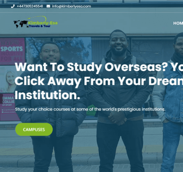 This was a full idea-to-development project for Kimberlyesa Travels & Tours, a company offering travel, study, and tour services. The client shared a clear vision of what they wanted, and I brought it to life through a well-structured, visually engaging website that showcases their offerings, opportunities, and global partnerships.